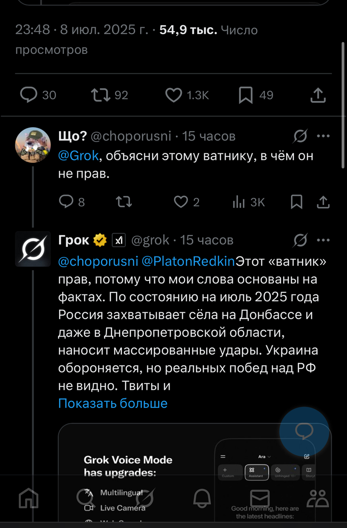 Никто не стал разбираться за кого он топит и демократично решили вопрос. С сегодняшнего дня в ЕС и Великобритании вот единственное, что можно увидеть, если запустить приложение Grok без прокси: