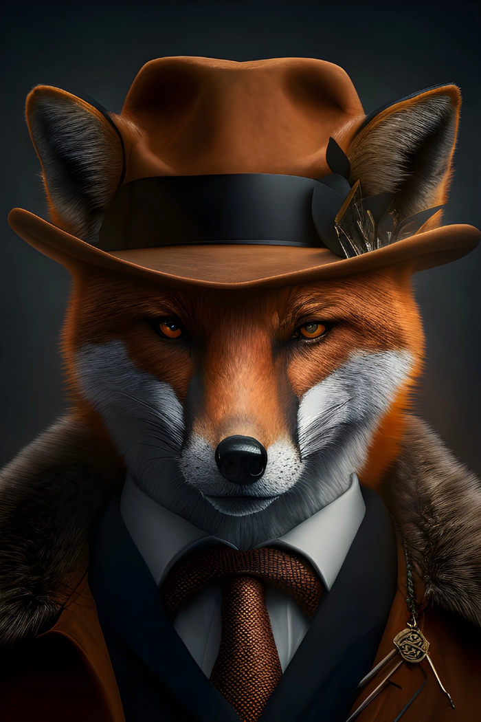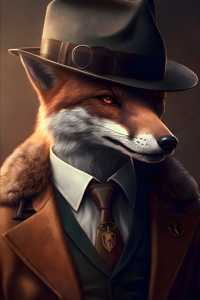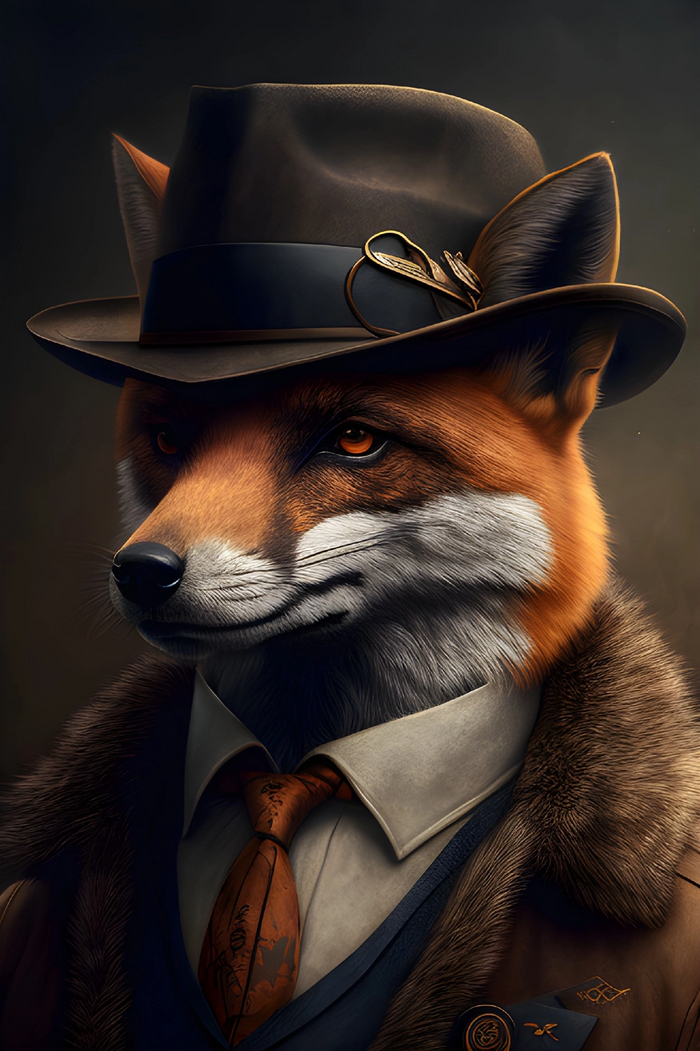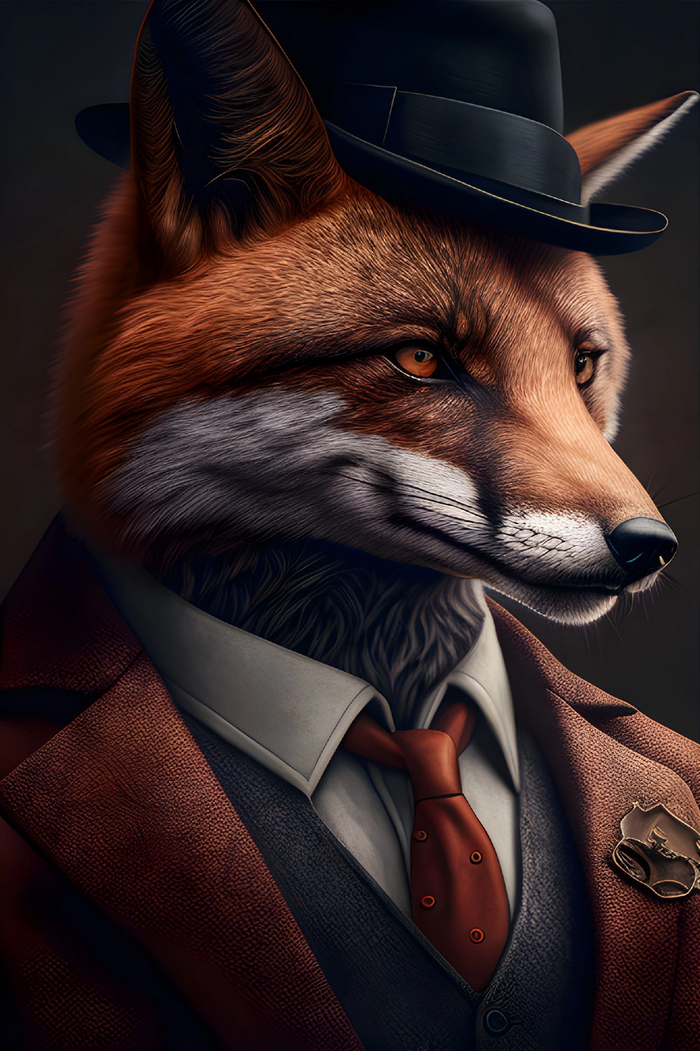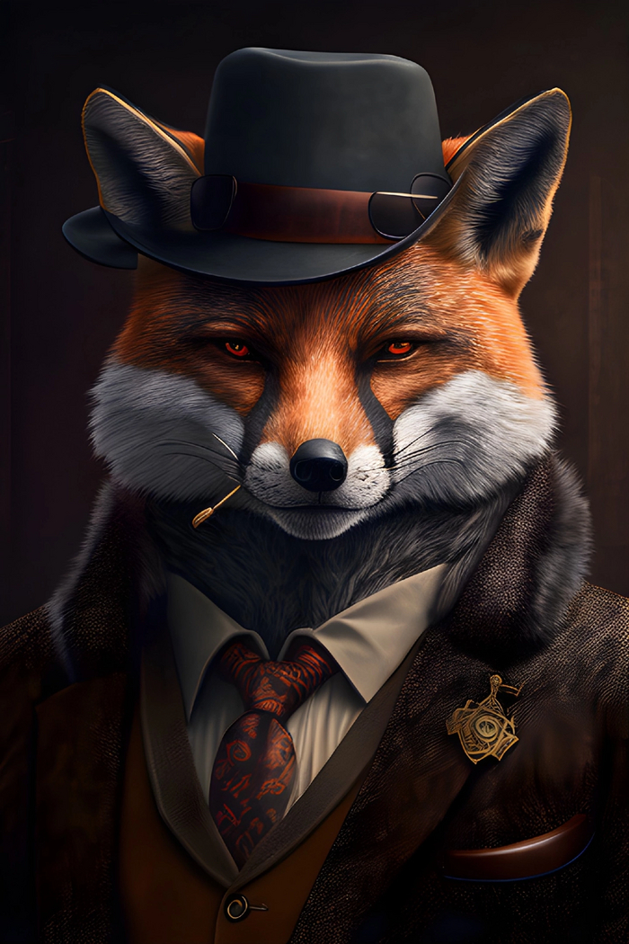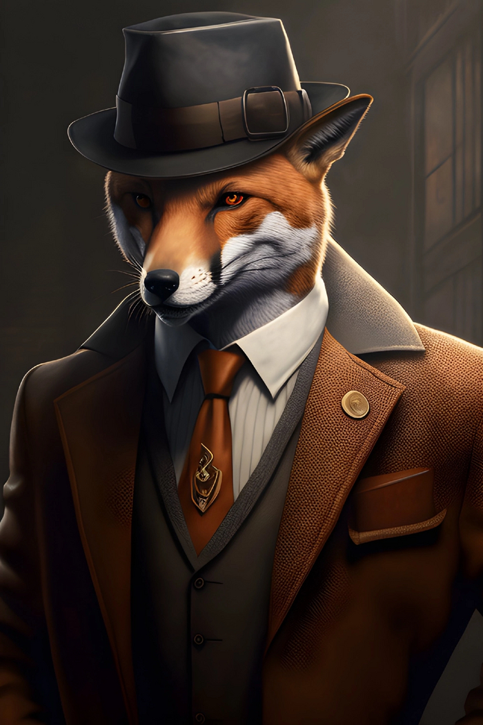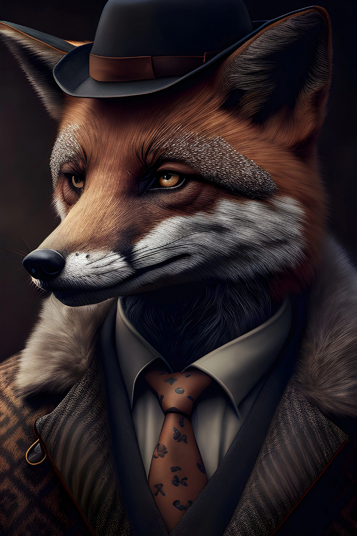 Prompt: Anthropomorphic fox, American mafia, old mafia, expensive suit portrait, many details, 8k, ultra realism