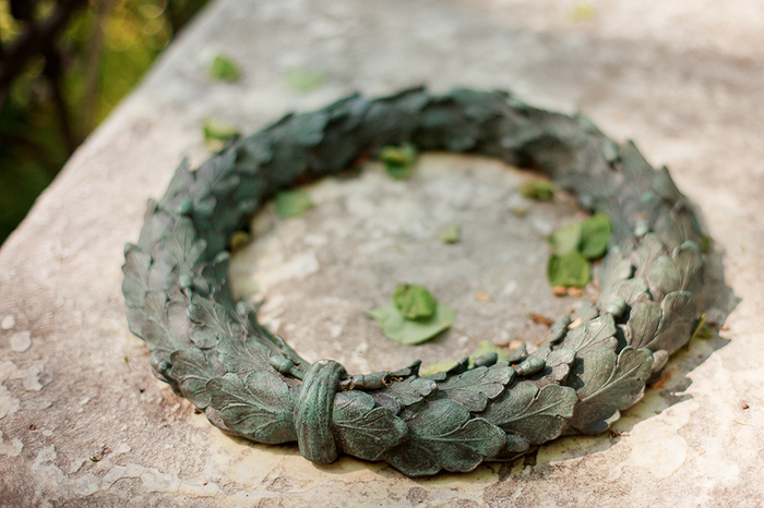 12. Довольно скромное надгробие Карамзина Николая, Михайловича. Создатель Истории Государства Российского покоится под белой мраморной плитой, увенчанной бронзовым венком из дубовых листьев.