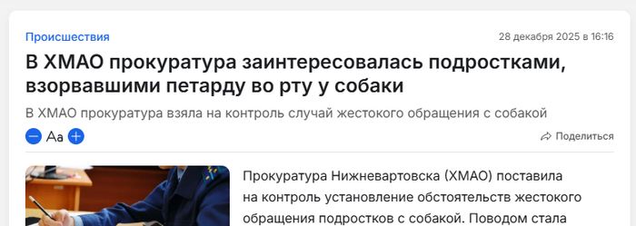 Ответ на пост «В Нижневартовске подростки взорвали петарду во рту собаки»1