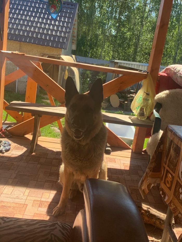Немецкая овчарка, откликается на «Макс». Собаке семь лет.