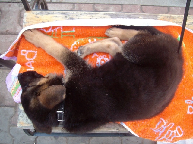 Не хотел отвечать постом, но решил в очередной раз передать привет не шибко добросовестным заводчикам питомника "Де Заубер Хофф" из Каменск-Уральска. Обращаясь к данным гражданам держите ухо в остро. Уж не знаю в порядке вещей это у них или мне так повезло, но... В общем, обратите внимание на кончик хвоста на фотографии "Первый день дома". В "младенчестве" был сломан хвост, сросся неправильно (хотя сомневаюсь, что это вообще могло пройти бесследно), так всю жизнь и висит крючок на кончике. Ну а заводчик воспользовался моей некомпетентностью (да и, лукавить не буду, пригубили с товарищем в дороге), вот и впарил "неликвид".