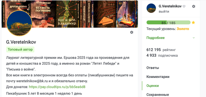 Я писатель, в этом году даже стал лауреатом премии им. Петра Ершова за книги для детей и подростков, а именно «Письма о войне» и «Летят Лебеди», которые я всегда безвозмездно отправляю Пикабушникам уже четыре года.