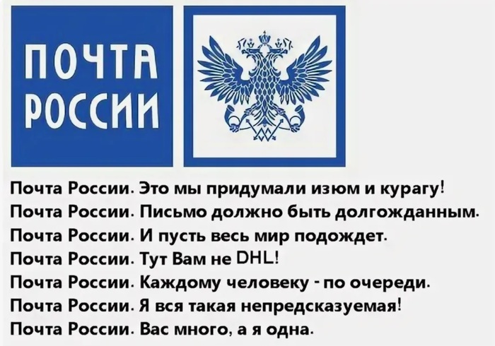 Люди, посмотрите в даль, там плывут российские почтальоны! Прощай Почта России, мы будем тебя помнить. Ты красиво умерла под ножом «эффективных» менеджеров.