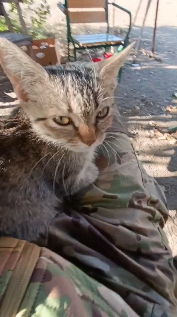 Во время разведки на луганском направлении мотострелок из Архангельска услышал жалобное мяуканье. Источником звука оказалась воронка от взрыва, где в грязи и обломках дрожал маленький котёнок.