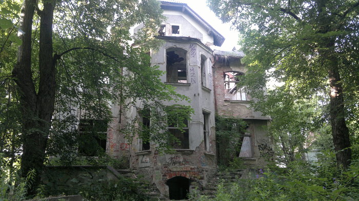 В 90-х это здание бункер из бетона под названием "Газовый замок" выкупил и начал восстанавливать немец.Потом он умер.Новый хозяин снес бункер под застройку.