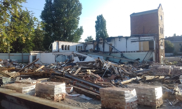 Сносят часть комплекса казарм на Калинина.Самую красивую часть-с башенкой!