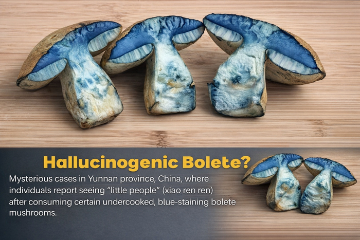 В Юньнани этот гриб называют по‑разному, один из вариантов — «цзянь шоу цин», что можно перевести примерно как «увидеть синие руки»: при разрезе мякоть быстро синеет.