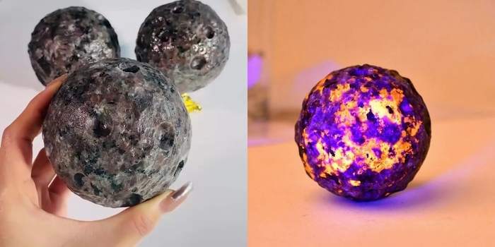 Йооперлит — это торговое название уникального природного камня, представляющего собой разновидность сиенита с флуоресцентными частицами содалита. При обычном свете он выглядит как серая порода, но под ультрафиолетовым светом ярко светится тёплым оранжевым цветом, напоминая «застывшую лаву». Ссылка на него