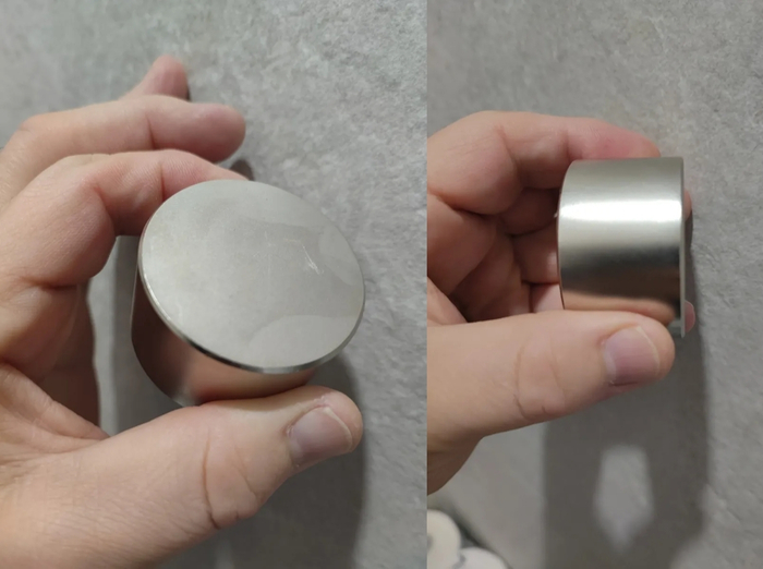 Мощный неодимовый магнит в форме цилиндра. Сила сцепления около 100 кг. Старинная легенда рассказывает о пастухе по имени Магнус (у Льва Толстого в рассказе для детей «Магнит» этого пастуха зовут Магнис). Он обнаружил однажды, что железный наконечник его палки и гвозди сапог притягиваются к чёрному камню. Этот камень стали называть «камнем Магнуса» или просто «магнитом», по названию местности, где добывали железную руду (холмы Магнезии в Малой Азии). Таким образом, за много веков до нашей эры было известно, что некоторые каменные породы обладают свойством притягивать куски железа. Ссылка на него