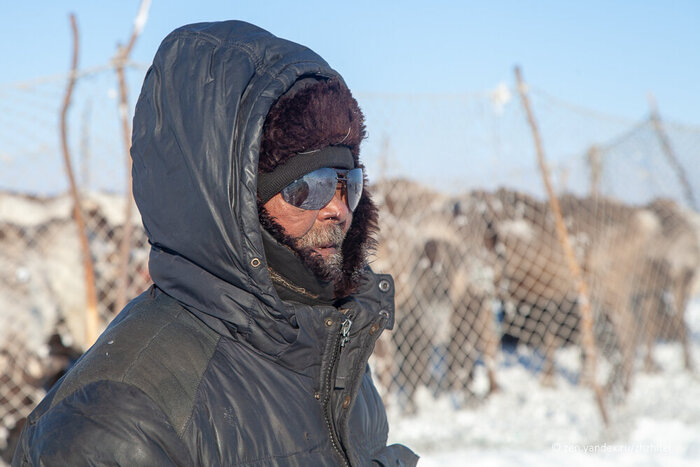 Главный в тундре — Андрей Григорьевич Явтысый. Он бригадир, муж Ольги Владимировны, к которой мы заезжали в гости по дороге в тундру. Остальные члены бригады тоже являются родственниками — сыновья, братья, двоюродные братья. Зимой со стадом только мужчины, все женщины живут в поселке.