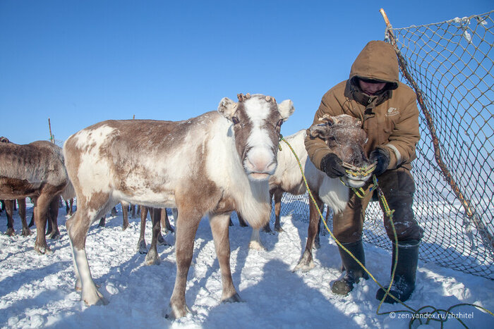 Вот так работают оленеводы в тундре. Условия, конечно, очень суровые. Люди и олени приспосабливались к ним веками.