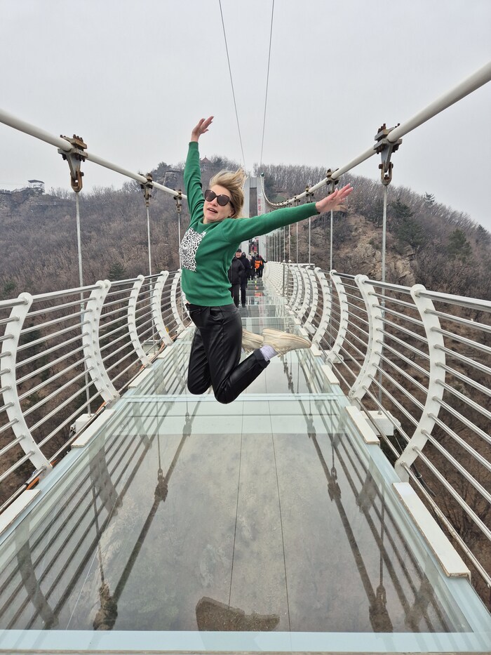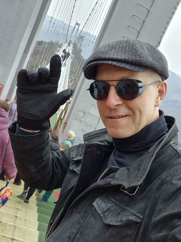 Стеклянный мост в Китае - скрипит, шатается, но держится))