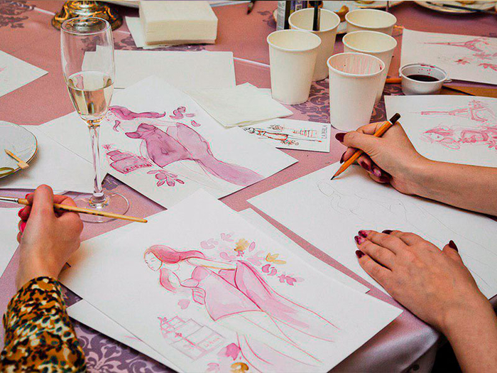 Всем привет, меня зовут Катерина, я из Санкт-Петербурга. По образованию я вовсе не художник, но время от времени люблю брать творческую «передышку» и хожу в СПб в одну небольшую уютную художественную студию — Арт Школа №1. За пару лет там перепробовала почти все мастер-классы, которые у них идут: живопись, скетчинг, линогравюру, поталь… И недавно мы с подругами добрались до самого необычного — рисование вином.