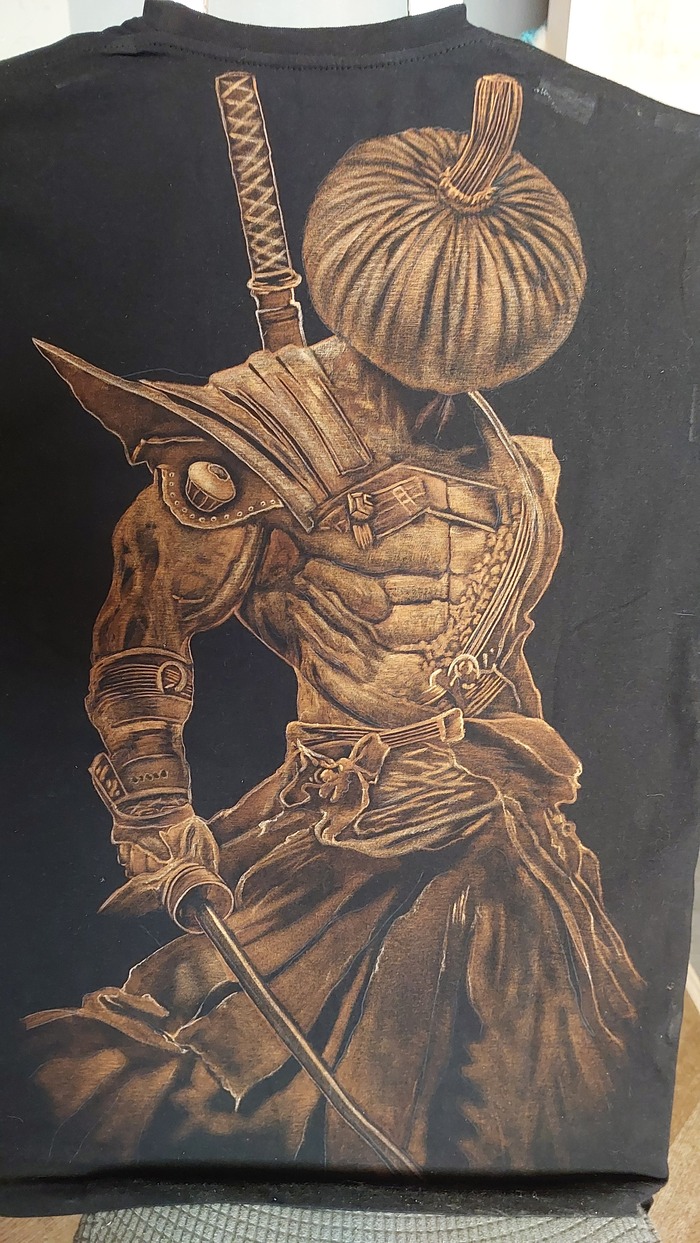 Как-то так. Согласен, вообще не похоже на оригинал, но такой цели и не ставил, я вот так вижу)) Ну и тыкву (голову), после всего пройденного, стало совсем несложно делать. На передней стороне тоже сделал небольшой принт, ну и вот итоговый результат: