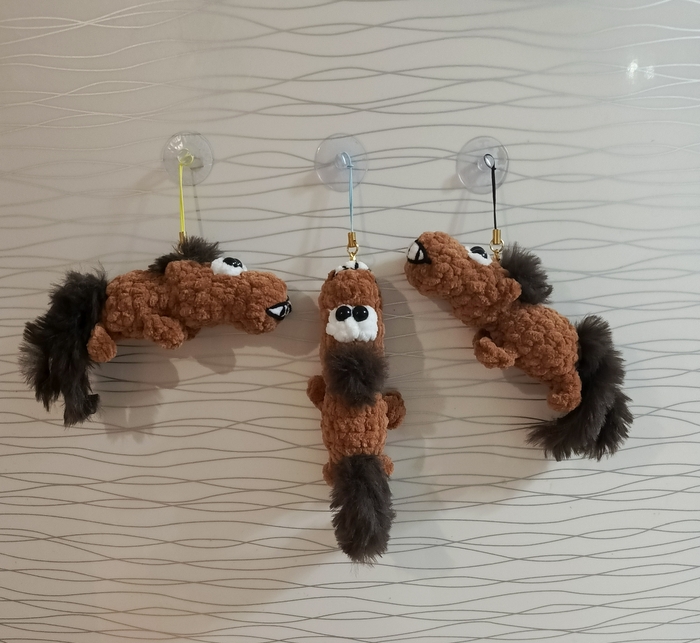 Связан спицами, из гипоаллергенного акрила, глазки на безопасном креплении, наполнитель — синтепон. МК нет, полностью авторская идея. Через всё тело — гибкий каркас, гнётся очень хорошо.