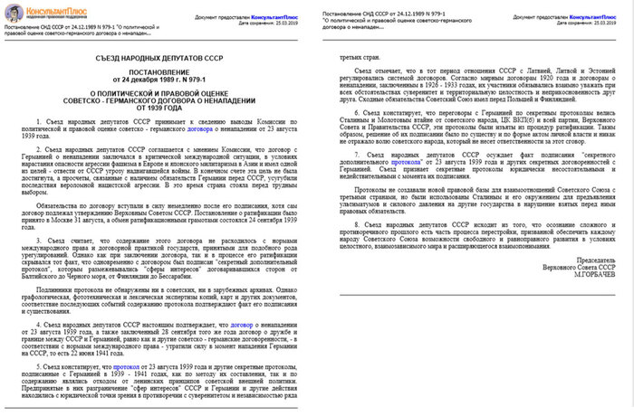 Есть в истории даты, которые становятся раной на теле народа. 24 декабря 1989 года — одна из них. В тот день подлые руки так называемых «народных депутатов», под давлением двух главных могильщиков нашей страны, вынесли приговор великому прошлому. Они осмелились плюнуть в память миллионов, осудив решение, которое в страшные предвоенные годы было актом высшей государственной мудрости.