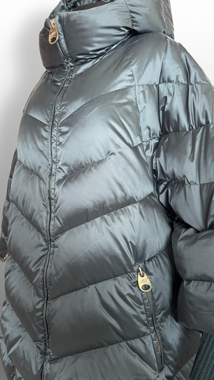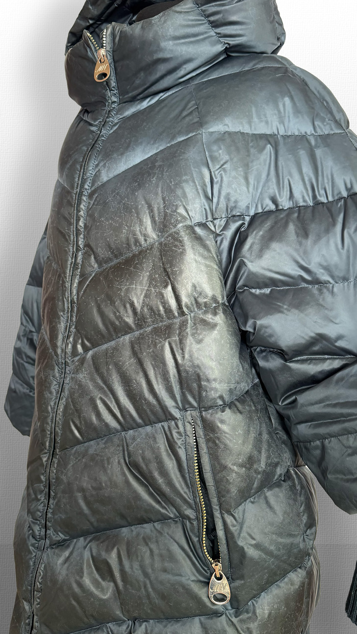 Такую курточку сдали нам в химчистку. Громких обещаний клиенту не давали и сами особо не рассчитывали на чудо. В итоге отстиралась неожиданно хорошо.