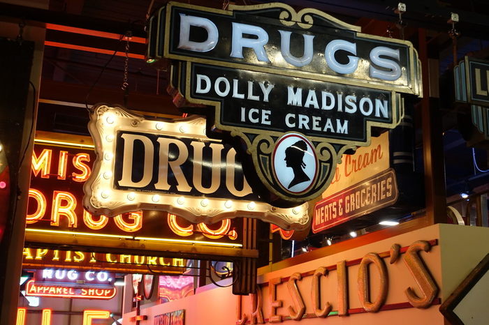 Музей знаков всегда наполнен старинным, необычным, неоновым гудением, сливаясь с шумом толпы, этом микс, создаёт ту неповторимую атмосферу, которая как бы на крыльях, переносит вас в прошлое Америки, в 30-е, 60-е, 80-е года - это то место, где все красивые, продуманные и уникальные вывески, продолжают жить, но того что они рекламировали, увы, больше нет.