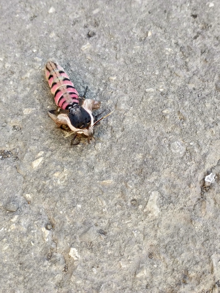 Здравствуйте, господа знатоки. Наткнулся на такую зверушку сейчас в Самаре, встречаю в первый раз. Может кто-то знает зверя? Размерами сантиметров 6-8 в длинну, крылья есть, волочаться по земле, как будто сожжены на концах.