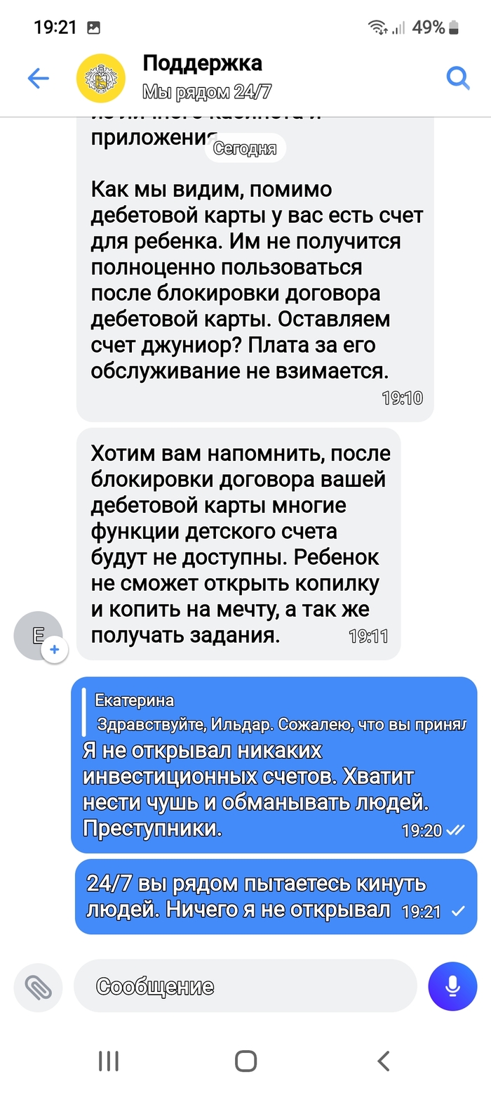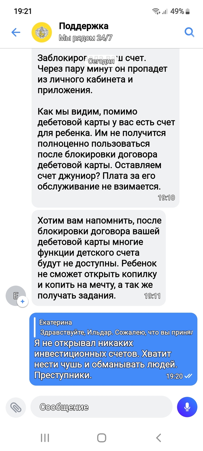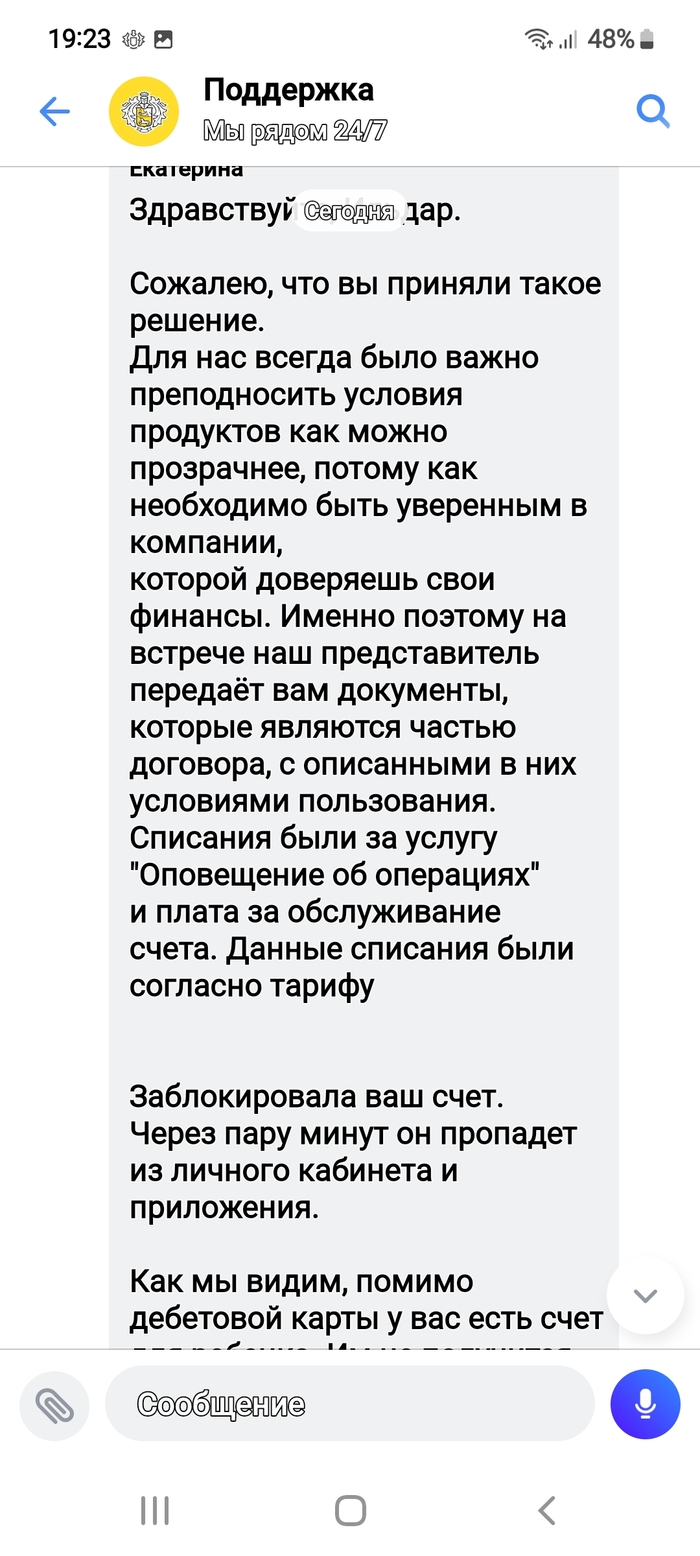 Отказазался на днях от их карты. Осенью приезжала представитель. Вышел к Ейй в машину. Не первый раз оформляю себе и ребенку. Спросил ее 4 раза- карта абсолютно бесплатная???- йа йа вальдемар! Гуд! Она бесплатная она луудддшаяя из всех! Прилетает списание 150 в месяц. Приложение и счета удалил. Скринов нет. Но есть переписка с иййхниммм пидрооператором онлайн. Он мечты моего Ребёнка решил затронуть. ( ПИДАРАСССИНАААА).