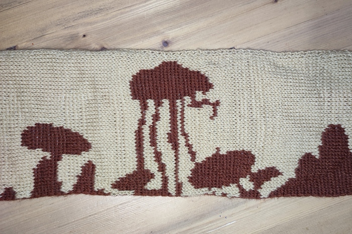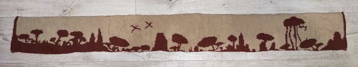 Приветствую всех. Закончен очередной шарф в технике двусторонний жаккард. В этот раз решил сделать ассиметричный рисунок. В целом все прошло удачно, были сделаны две схемы, по которым все вязалось.