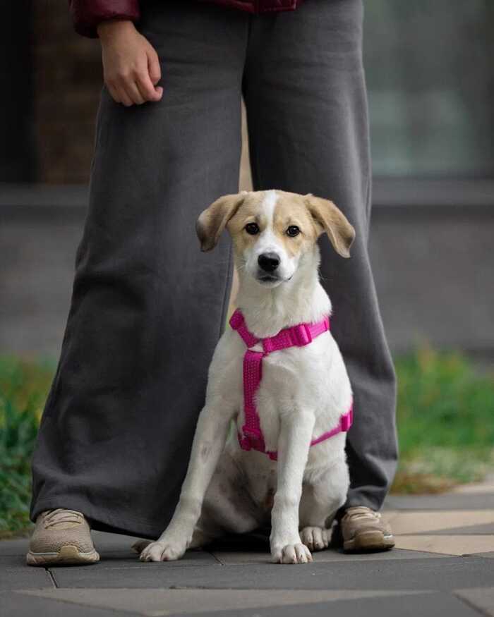 Виоле около 4,5-й месяцев, она спасена с авиационного завода, сейчас ищет дом и живёт на домашней передержке.
