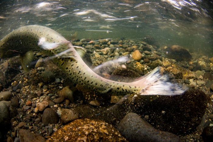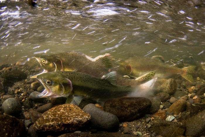 Некоторые дома очень простые. Например гнездо лосося довольно примитивное. Рыба движениями хвоста расчищает грунт, создавая "нерестовый бугор". На него-то и откладывается икра.