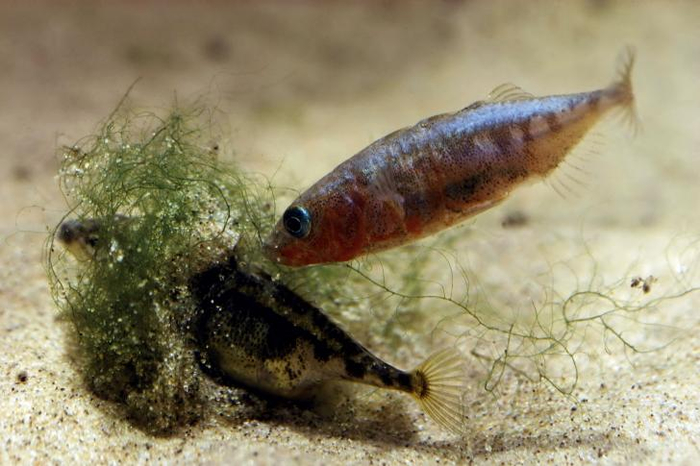 Некоторые рыбы строят используя своё тело не только в качестве инструмента, но и источника строительного материала. Например рыбы колюшки.