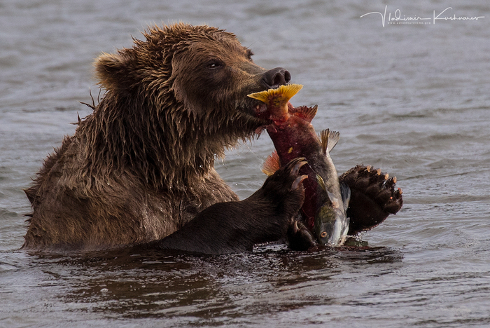 Ежегодно, в июле, мы делаем экспедицию по наблюдению и съемке охоты бурого медведя на нерестовых реках и озерах Камчатки.