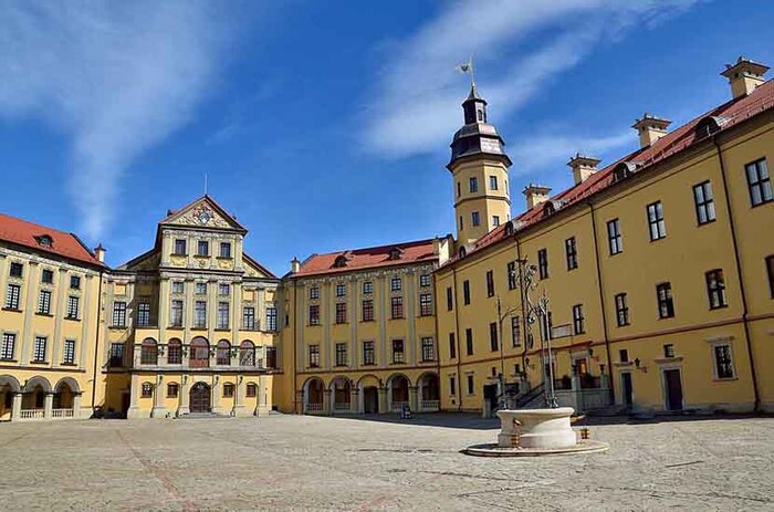 Пожалуй, самый знаменитый белорусский дворцово-замковый комплекс находится в городе Несвиж (Минская область), что расположен в 112 км на юго-запад от столицы страны.