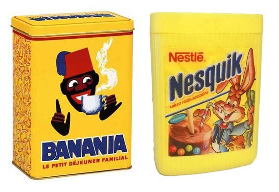 Для того, чтобы быстро войти на рынок какао, воротилы из американского Nestle воспользовались стандартным приёмом, взяв уже наработанный визуальный паттерн у конкурентов. На полках магазинов быстрорастворимый Nesquik красовался в том же самом жёлтом цвете (хотя в нём уже и не было банана) с синими буквами и белым абрисом — оставалось лишь заменить хорошо узнаваемого чернокожего солдата в красной феске.