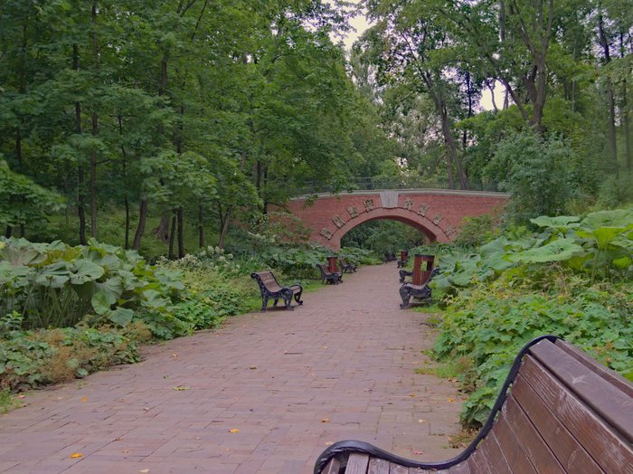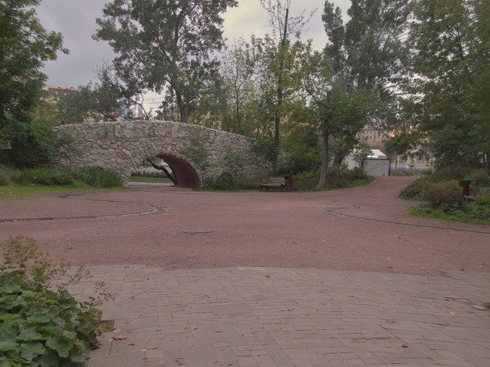 Под одни из каменных мостов сада можно упасть на лавочку и душевно позалипать под вкусный чай.