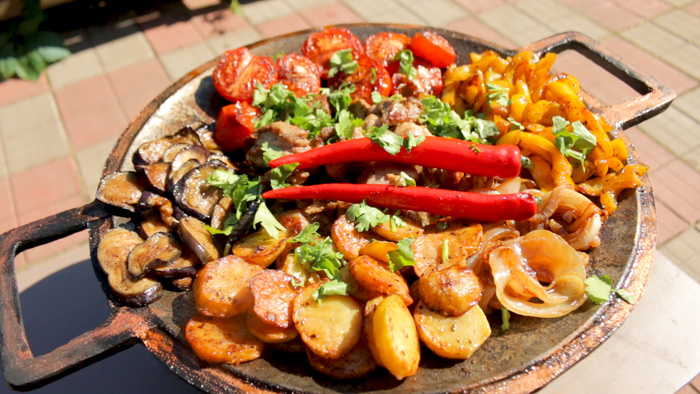 кидаем все ингредиенты на слой теста, закрываем сверху други пластом и в духовку на пару часов при 170 градусах, плюс минус. Тут оцениваем силу запекания вашей духовки, смотреть нужно на румяность пирога в целом. Я пару раз доставал, вскрывать квадратик и пробовал картошку. Время суммарно получилось около двух часов.