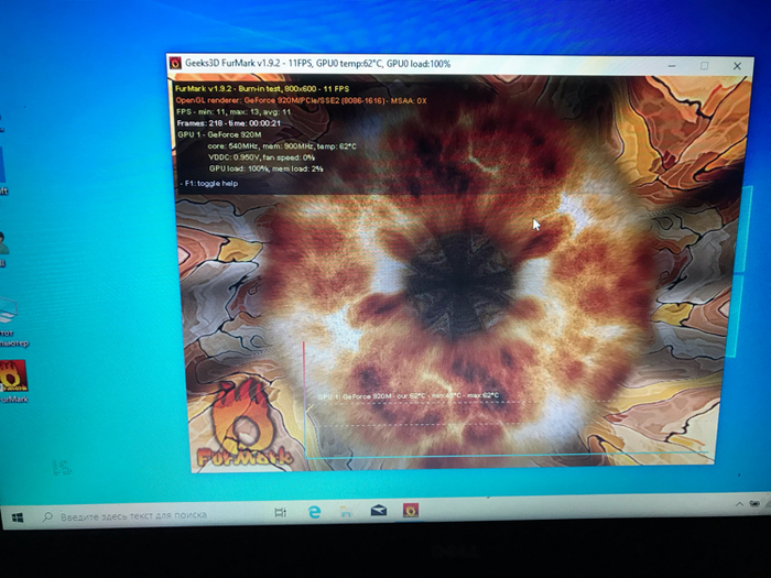 Под нагрузкой тоже всё хорошо. Прогревать видеочип не требуется, тем более это никак не помогло бы в данном случае.