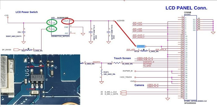 Напряжение должно поступать с логики под позиционным номером UG1( на фото : верхняя левая часть-кусок схемы, а нижняя левая - кусок фото платы).