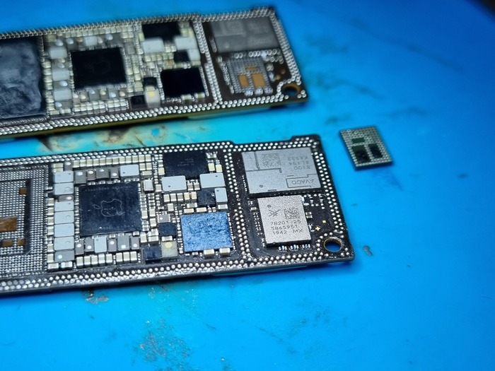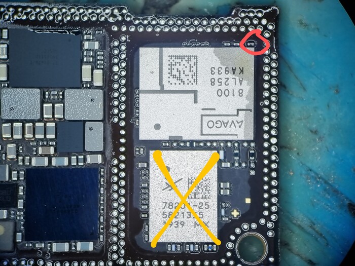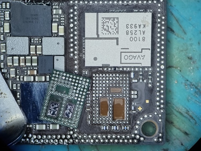 Из не менее важных этапов нужно также убрать часть шаров на плате, так как в некоторых местах рядом друг с дружкой есть линии 4.3в и цифровые модема и если контакты слипнутся, то модем уедет к харону без возможности восстановления. Достаточно просто подключить аккумулятор.