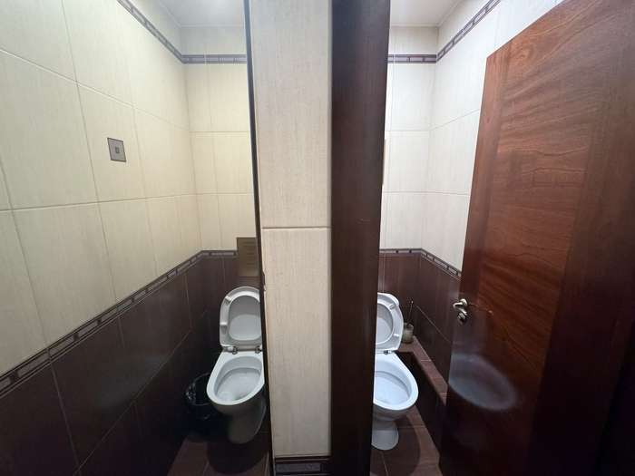 Когда в Сочи в Бархатных сезонах построенных наспех перед Олимпиадой я наткнулся на торчащую в дверном проеме ванну, я подумал ну бывает, чего, торопились. В одном из кафешек Питера наткнулся вот на такой туалет. В одном дверь есть, а в другом ее не то, чтобы нет, она конструктивом не предполагалась. При этом правая часть работает по давно известному принципу (тут не ощущается из-за искажения перспективы широким углом): зашел, раскорячился над унитазом или зашел сбоку. закрыл дверь. При выходе повторить в обратном порядке. Загадочно и хочется цитировать про разруху и клозеты. Потом вспомнил что это Питер, детка. Успокоился. А кафешка огонь оказалась.