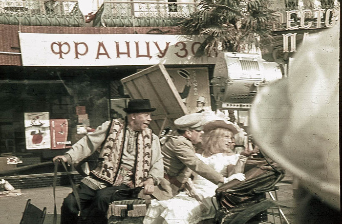 8. Сцены, где Данька Щусь чистит обувь, снимали на углу улиц Рузвельта и Игнатенко. Между прочим, брусчатку перед съемками выкладывали из резины. На самом деле, там асфальт.