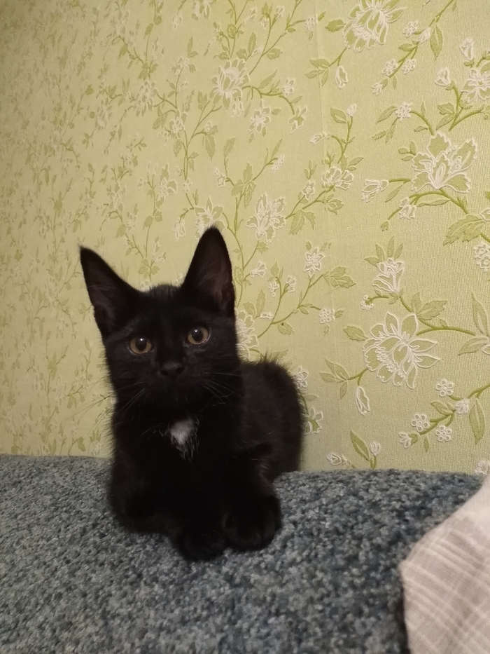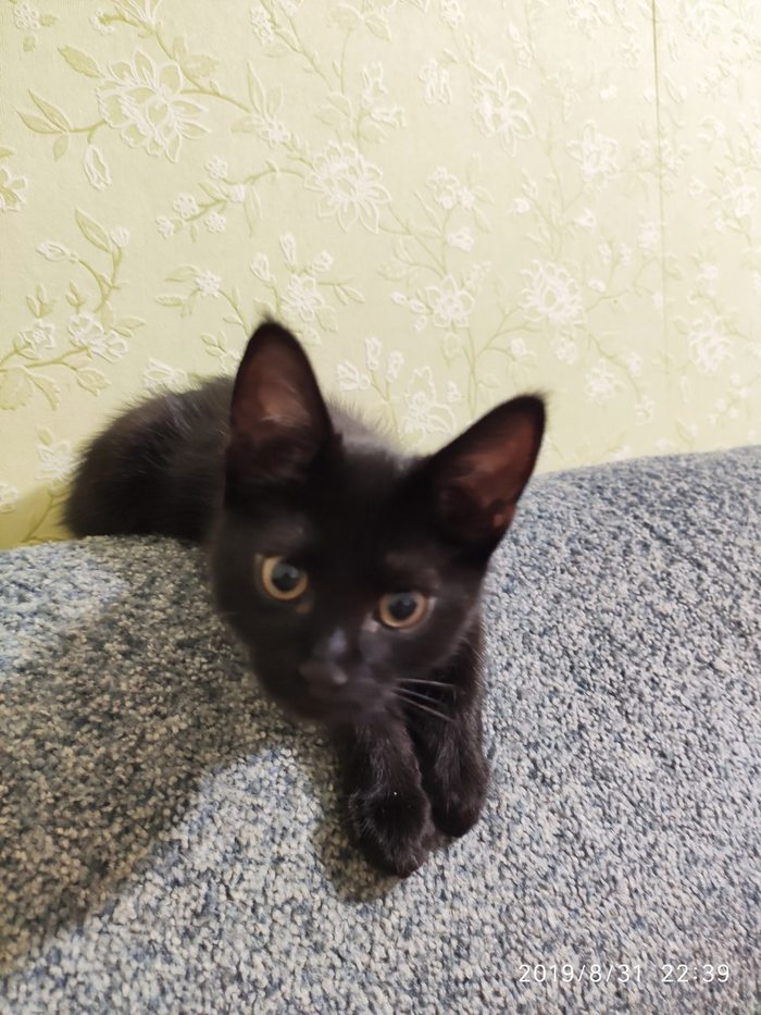 Появился он у нас из нашего же подъезда 23 августа. Утром я проснулась из-за плача кота и сначала подумала, что это звук с улицы. Но когда уже пошла на работу обнаружила, что этот котенок Гав оказывается сидел на площадке между 4 и 5 этажами. Какая-то падла просто подбросила его нам в подъезд. Котенок был чистый, даже не пыльный. Немного худоват. Пришлось взять его к себе на передержку. Первые несколько дней мяукал, искал свою маму, но сейчас уже привык к новому месту.