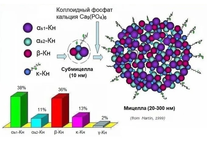 Дополнительно в состав мицеллы входят кальций и фосфор.