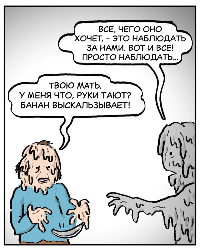 Ох.... Ребята. Не зря тетка мне всякие ужасы запрещала. Мне было лет 7-8. Я потом неделю наверное нормально не спал. Это был какой-то дикий, глубинный ужас. Грудная клетка, откусывающая руки, это было всё, это был страх, это был ужас, длящийся бессонными ночами.