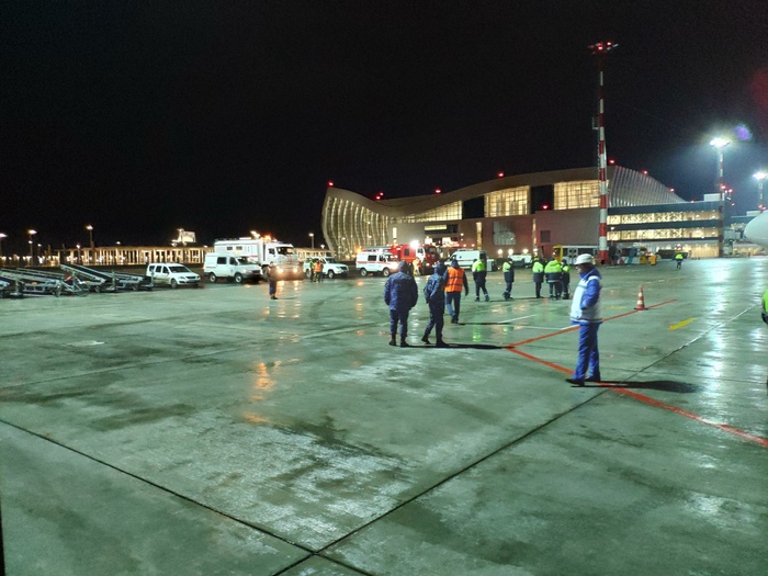 Когда спускался по трапу, медленно начало доходить, вокруг собрали немереное количество тех.персонала... с выпученными глазами, белыми, закушенными от нервов губами. Не один наряд скорых, пожарных. На фото (из дверей автобуса) уместилось меньше половины из прибывших.