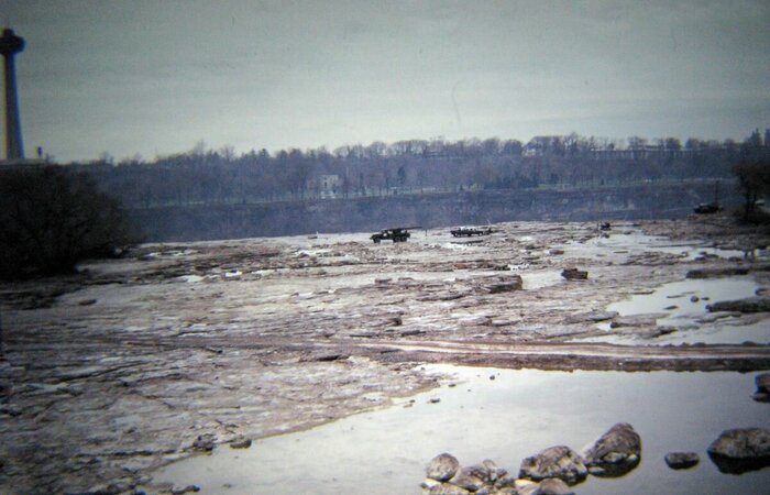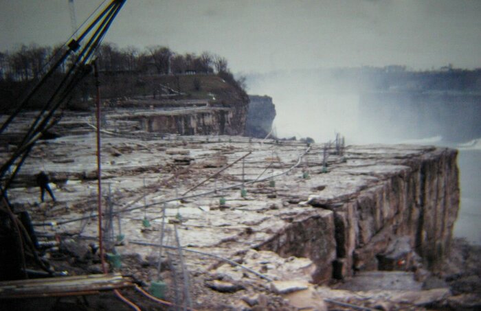 Интересная история о том, как в течение нескольких месяцев в 1969 году поток воды Ниагарского водопада, который находится на американской стороне (American Falls) сократился до маленького ручейка, и его пришлось осушать ремонтировать.