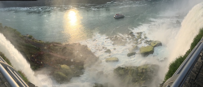 Всем доброго времени суток! Как и обещал пост про поездку в США. Сегодня про Ниагарский водопад. Это самый большой водопад в мире. 80% воды находится на территории Канады. Вид на него, соответственно лучше со стороны Канады. Хотя в конце будут фото со смотровой площадки и там будет его хорошо видно, жаль только не передать реальный его вид посредством фотографии...Поездка на Ниагарский водопад у нас заняла 6 часов. Экскурсия для русскоязычных, на русском языке с русским гидом. Занимает сутки. Помимо покупки магнитиков на месте и кучи разного барахла вы так же можете там в лавках купить настоящий кленовый не концентрированный кленовый сироп(его нужно потом каким то чудным образом разбавлять, потому что очень очень сладкий и называется - передай привет поджелудочной). Кстати гражданам США можно перейти мост, который соединяет США и Канаду и увидеть ниагару с другой стороны без получения каких либо других документов. Так же для тех кто желает можно купить билеты на катер(или хз как называется этот вид транспорта) и Вас так сказать доплывут в самое сердце водопада. Прямо под него. В итоге будете промокшие до нитки но безумно счастливые. Ощущения непередаваемые. Ощущаете на себе всю мощь природы. Там, внизу у водопада настолько влажно, настолько часто на Вас падают капли воды, что почти невозможно долго это созерцать. Глаза открыть трудно. Для особо одарённых есть даже услуга - полёт над Ниагарским водопадом на вертолёте...Там же, кстати неподалёку находится резервация индейцев, которые торгуют всем чем угодно и занимаются чем угодно не уплачивая при этом налог ни единого цента. В том числе и казино. К сожалению, кроме шикарнейшего вида и ощущений от морской прогулки больше рассказать лично мне про Ниагару нечего. В следующем посте расскажу про Нью-Йорк. И чувствую что фото придется догружать в комменты. А теперь ловите фоточки с Ниагарского водопада.