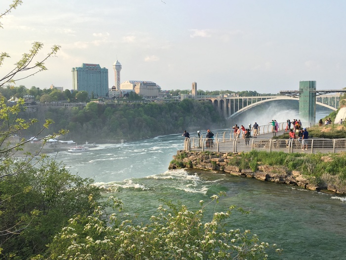 Помимо самого водопада местность изобилует дополнительными развлечениями и мероприятиями, в которых мы не участвовали, потому что и не планировали. Но самих мероприятий и возможности посмотреть ещё что-нибудь в избытке, очень часто они связаны с природными объектами: это какие-то острова, сады цветов, маршруты для среднедальних поездок на велосипеде (в GO поезд, кстати, можно взять велосипеды), варианты походить-посмотреть по лесам и полям в автономном режиме. Часть из этих маршрутов находится в США, которые таким образом отыгрывают туристов, компенсируя неполную возможность наблюдать водопады со своего берега. Кроме природных явлений предлагаются и техногенные: из запомнившихся рекомендаций, можно посетить шоколадную фабрику Hershey’s. А кто-то едет спустить деньги в стоящих на берегу казино.