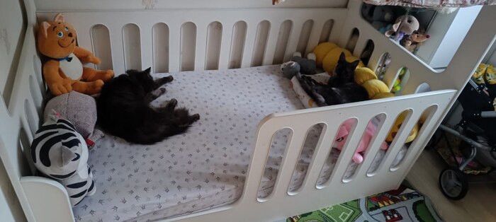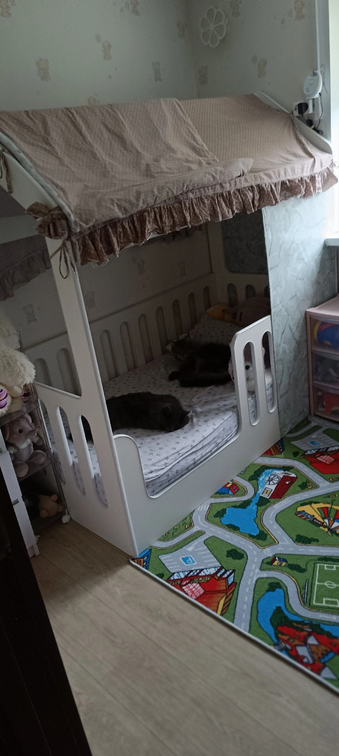 Уже не знаю почему, но все наши коты с первого дня в качестве любимого места в доме выбрали именно детскую! Утром иду будеть дочь в садик, коты слышат звук открывающейся двери в ее комнату и тут же сбегаются со всех углов дома.
