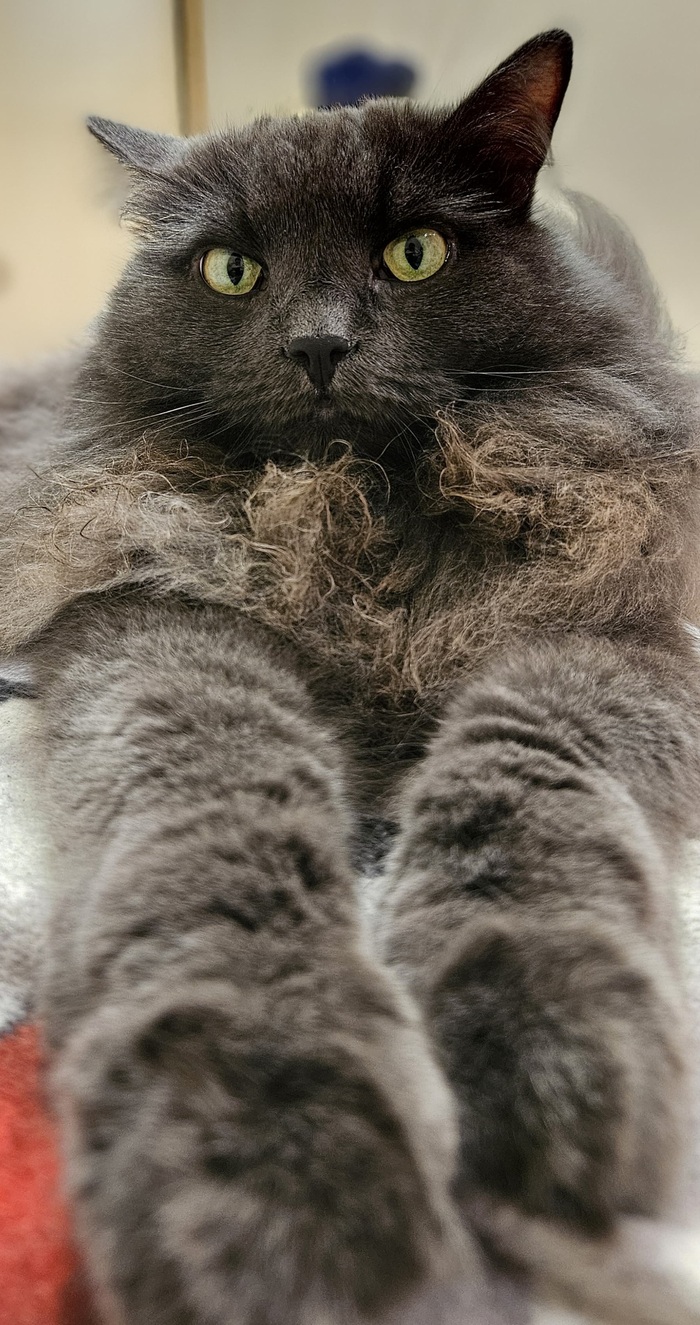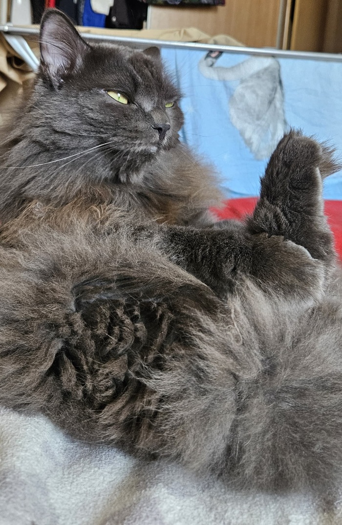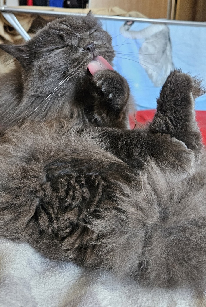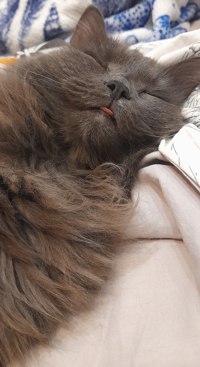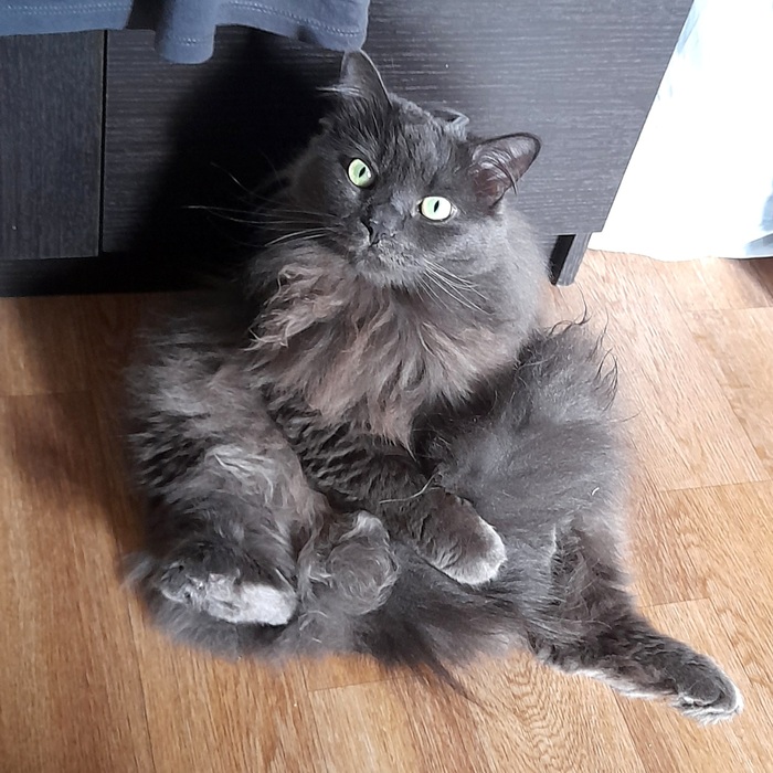 Так как в те времена начался ковид, мы много времени проводили дома вместе, и кот вырос крайне общительный, болтливый и прямо приставучий! Больше всего, конечно, Сэми любит своего котопапу (везде сопровождает и часто приходит поласкаться), ведь я - купаю, чищу уши, стригу когти и так далее(