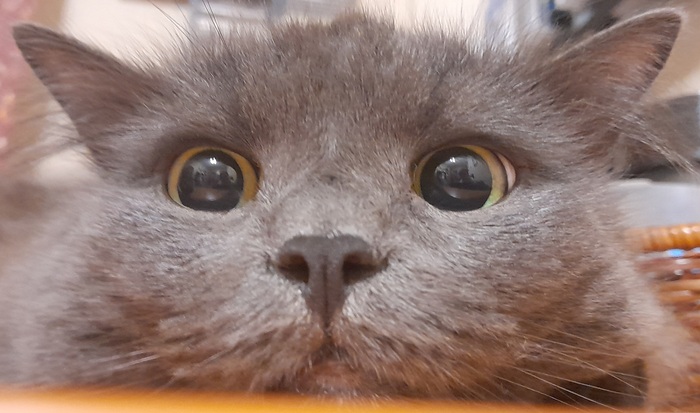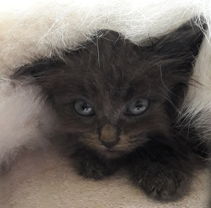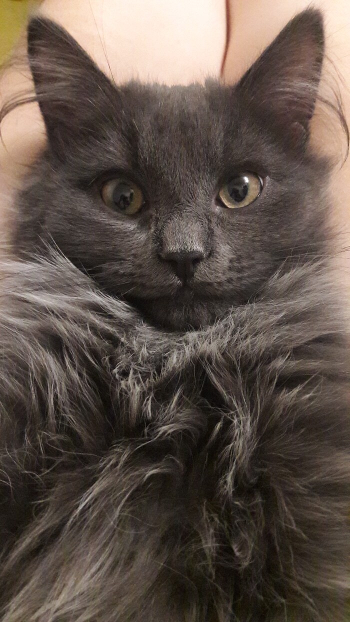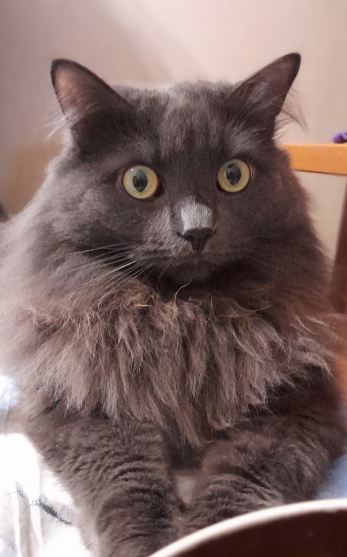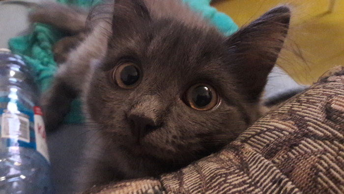3 сентября 2020 года, перевернув календарь, мама вышла в огород и увидела на тропинке под кустом серенький комочек. Он был тут же пойман, приласкан и принесён домой, чтобы накормить и определить его дальнейшую судьбу (в тот день я как раз приезжала в гости). Характер комочка был сразу виден на его мордашке: