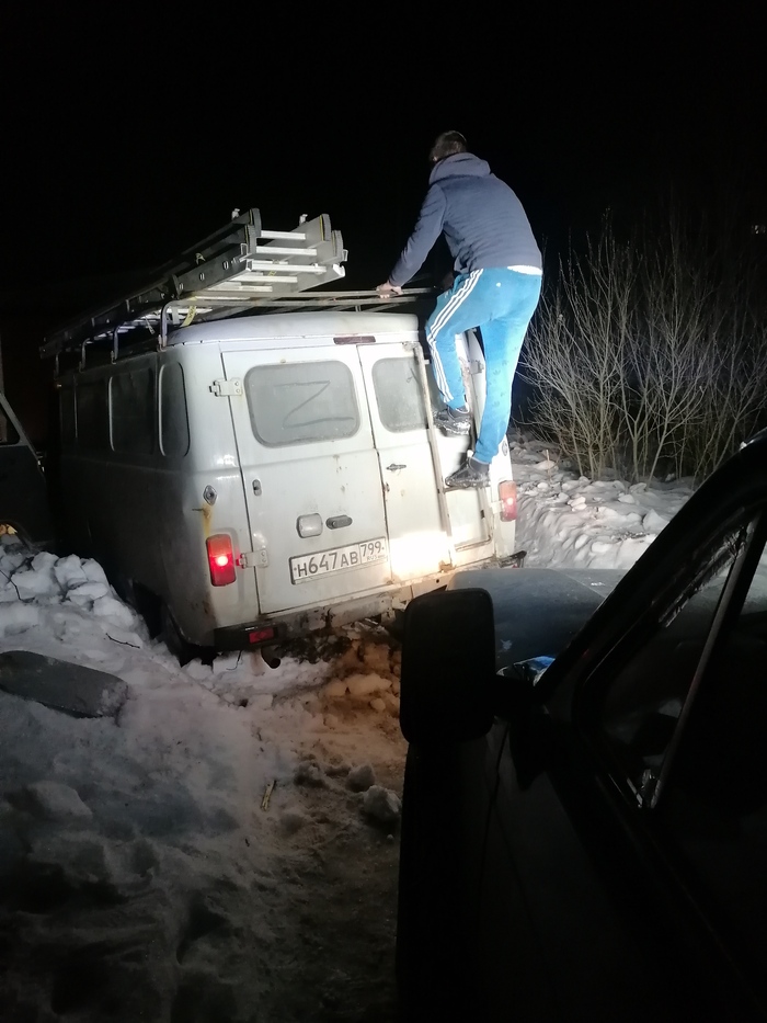 зацепились, а УАЗик плотно так сидит, на фото видно..